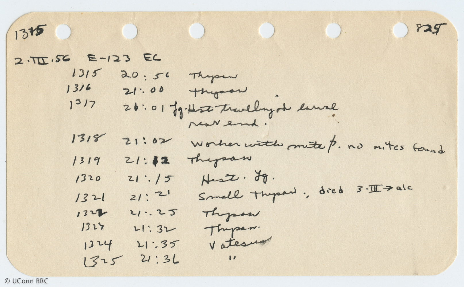 Card 825 includes Field Nos. 1315-1325