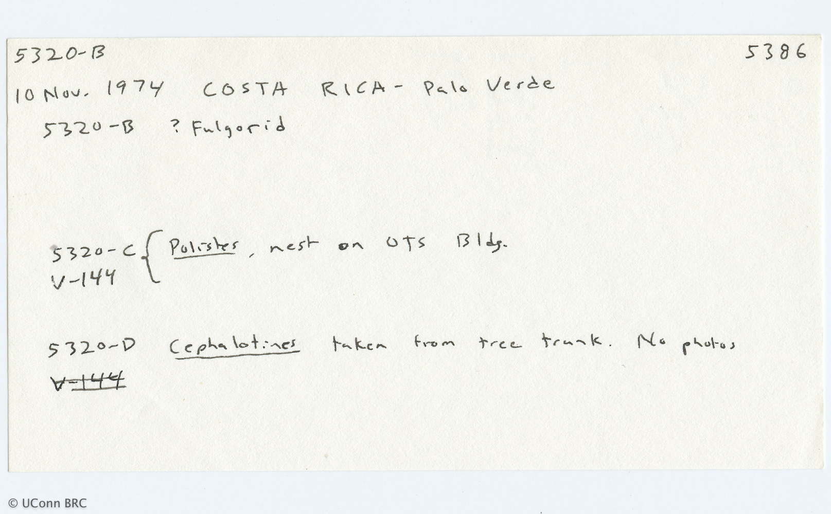Card 5385 includes Field Nos. 5319-5320; Field No. 5320 continues onto Card 5386 with notes labeled A-D