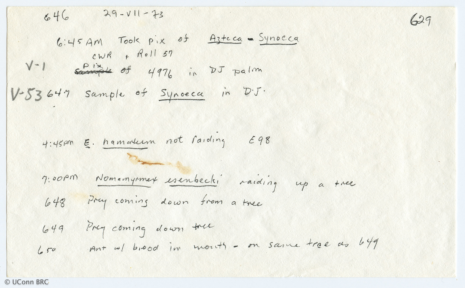 RETTENMEYER ARMY ANT FIELD CARD DETAILS