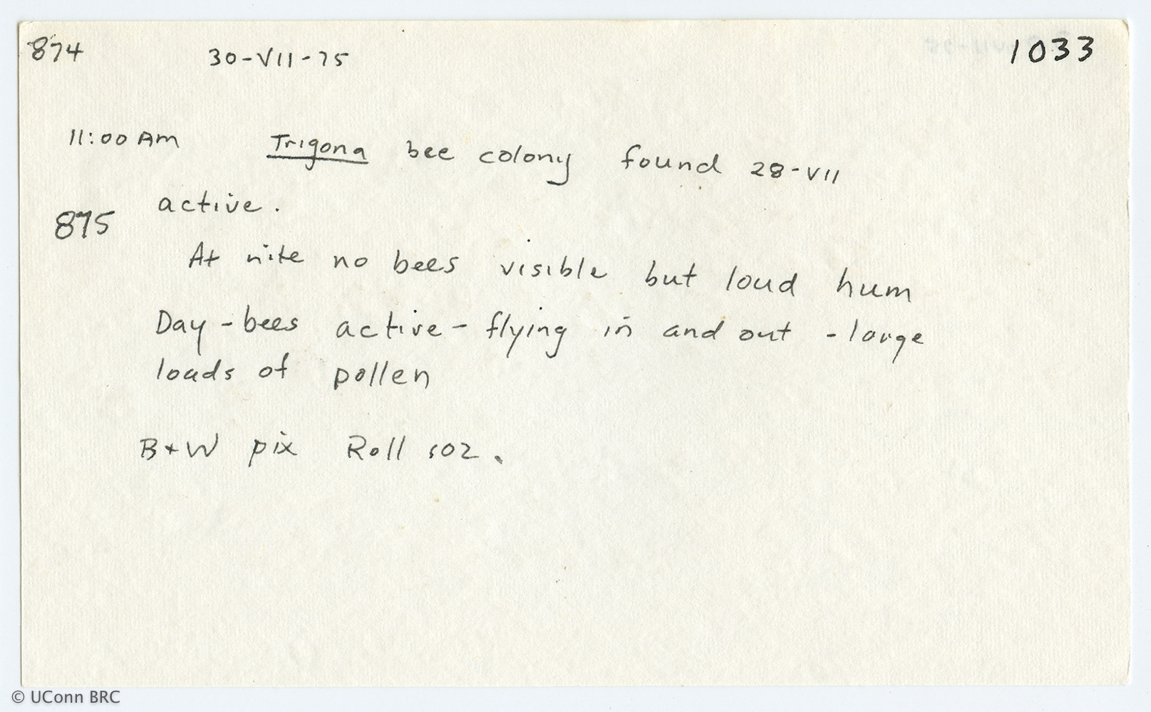 Card 1033 includes Field No. 875; 875 continues onto Card 1034