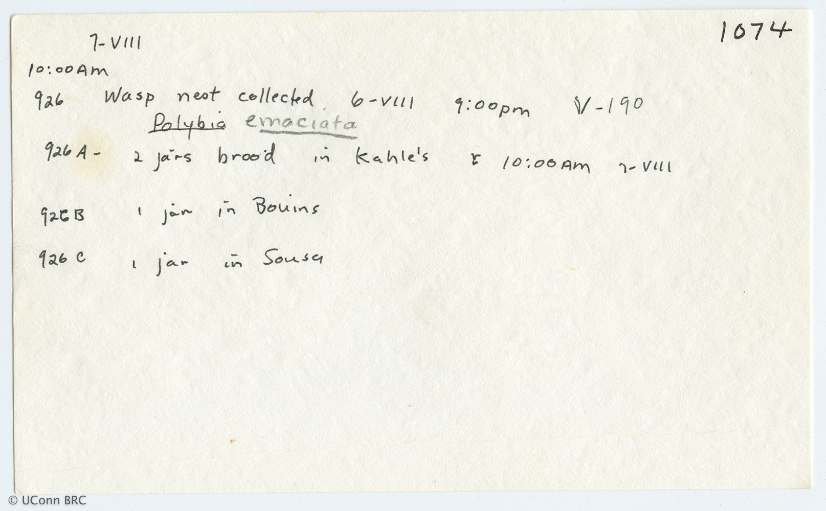 Card 1071 includes Field No. 926; 926 continues onto Card 1074