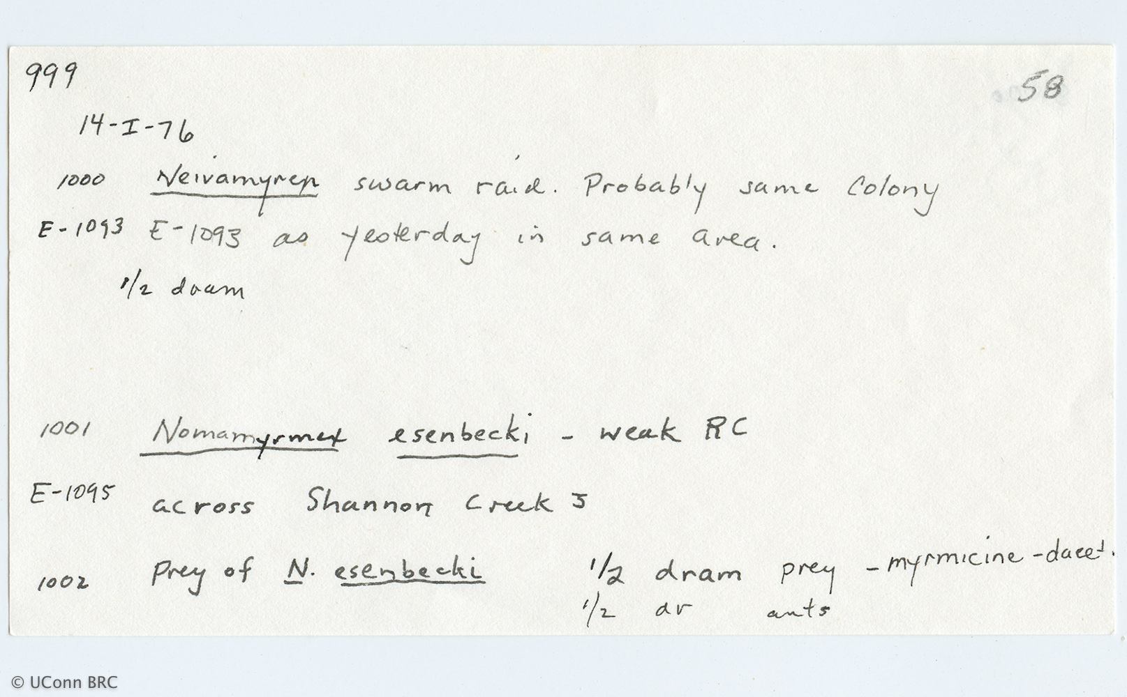 RETTENMEYER ARMY ANT FIELD CARD DETAILS