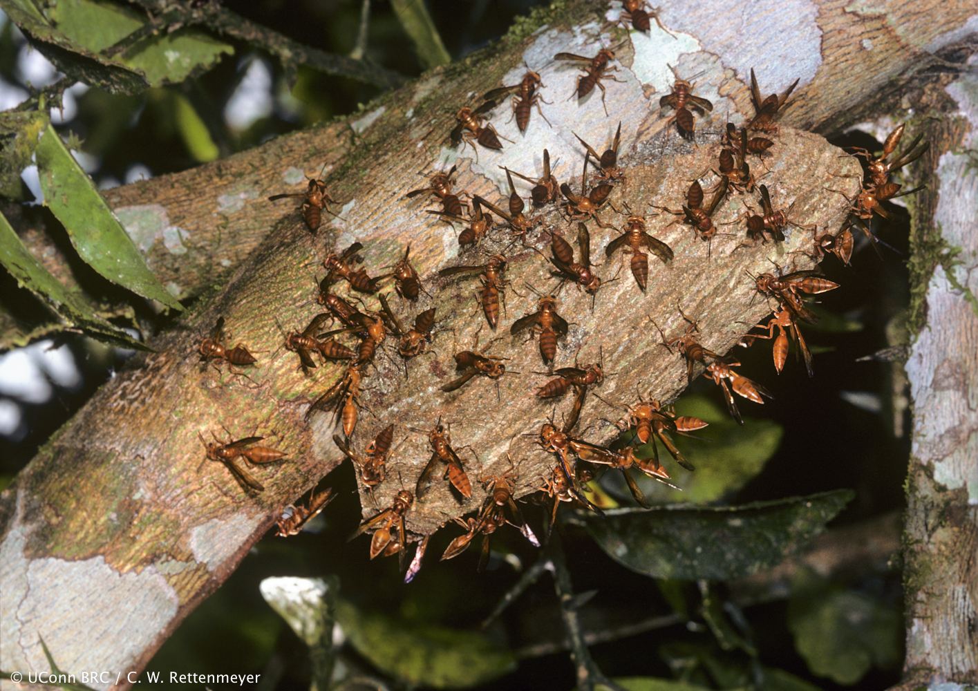 gasters, wasps running on tree branch