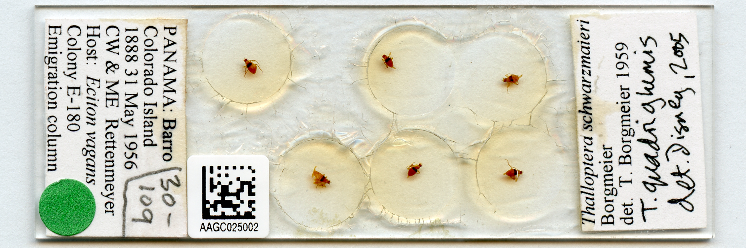 Determined as Thalloptera schwarzmaieri by T. Borgmeier in 1959; determined as "T. quadriglumis" by Disney in 2005